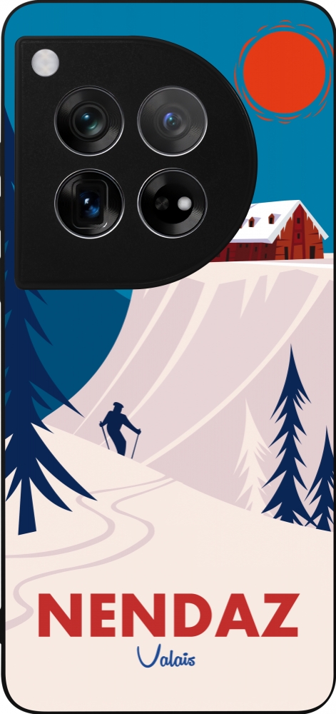 Coque OnePlus 12 - Silicone rigide noir Nendaz Cabane Ski