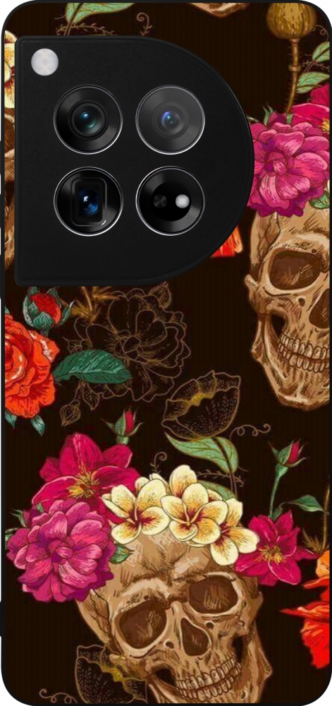 Coque OnePlus 12 - Silicone rigide noir Skulls and flowers