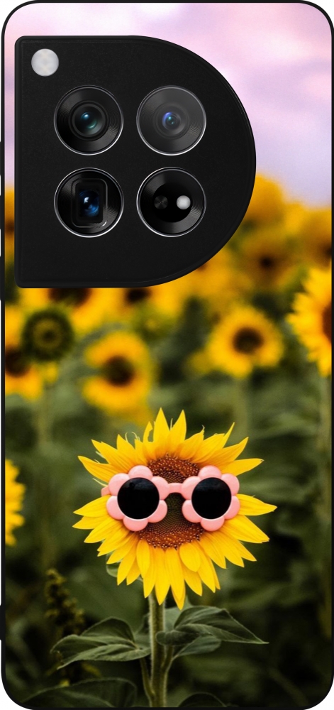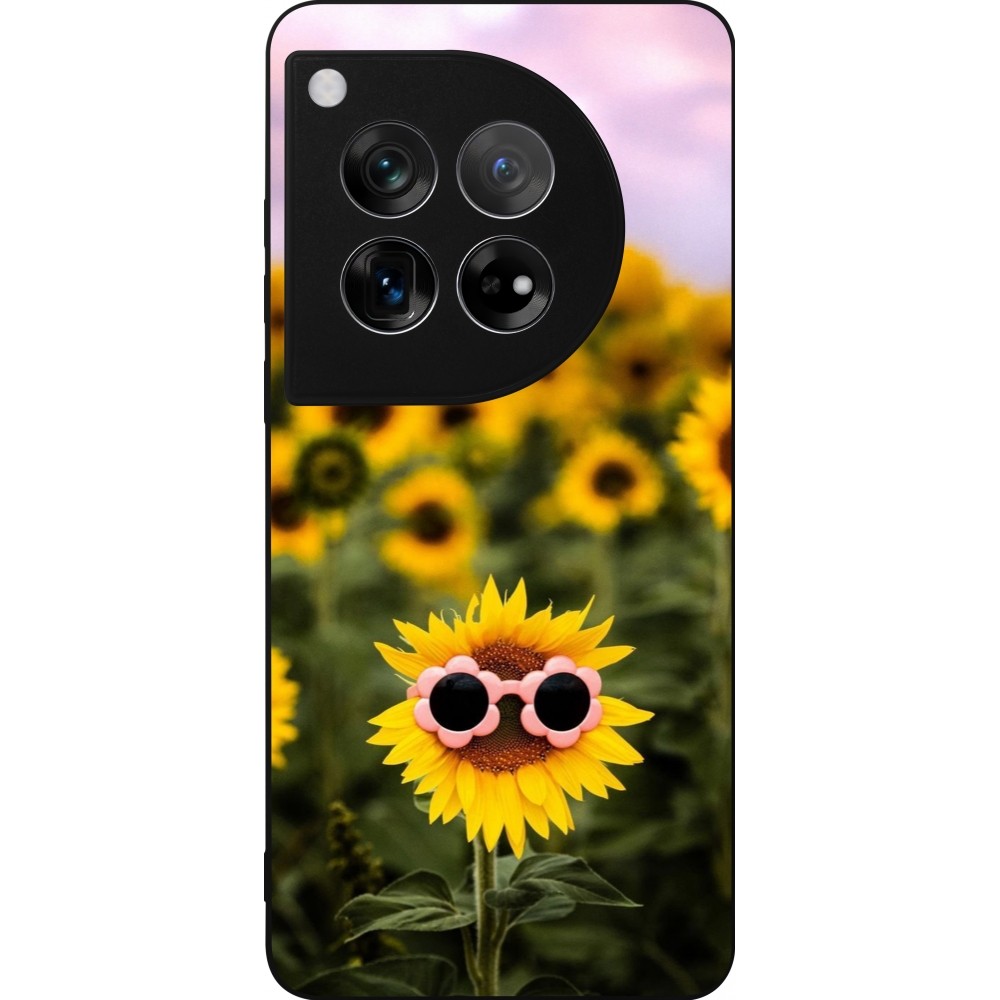Coque OnePlus 12 - Silicone rigide noir Sunflower with glasses 2026