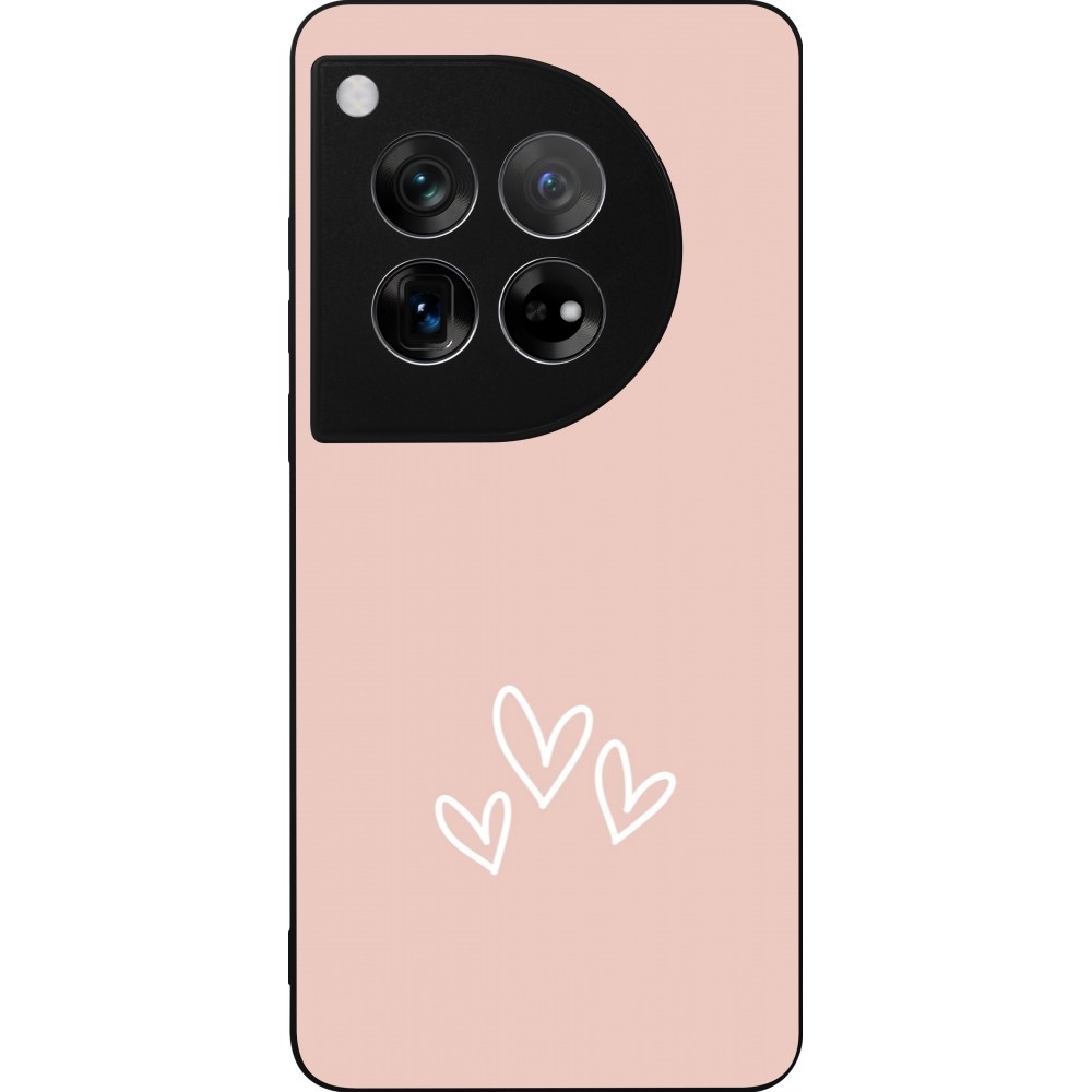 Coque OnePlus 12 - Silicone rigide noir Valentine 2023 three minimalist hearts