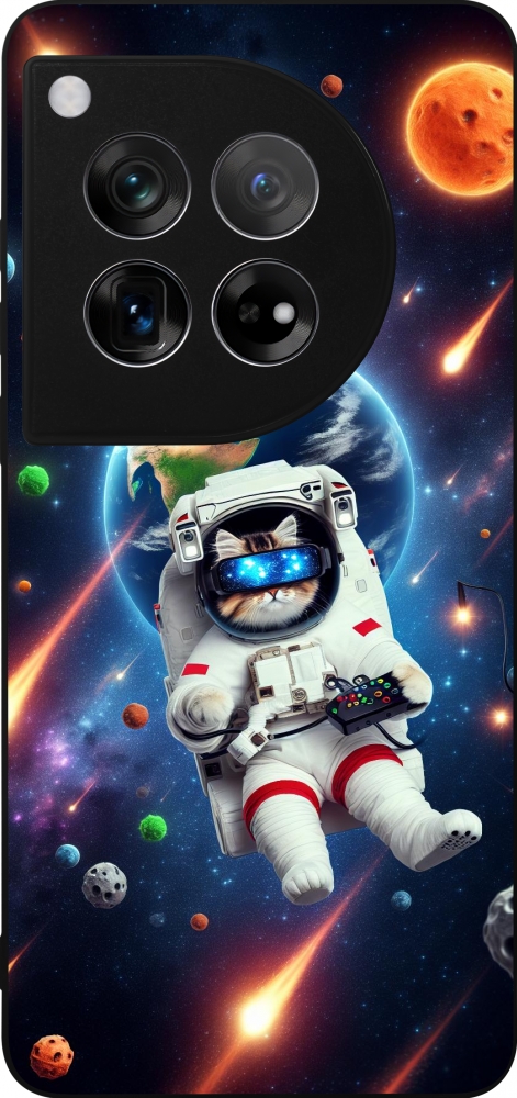 Coque OnePlus 12 - Silicone rigide noir VR SpaceCat Odyssey