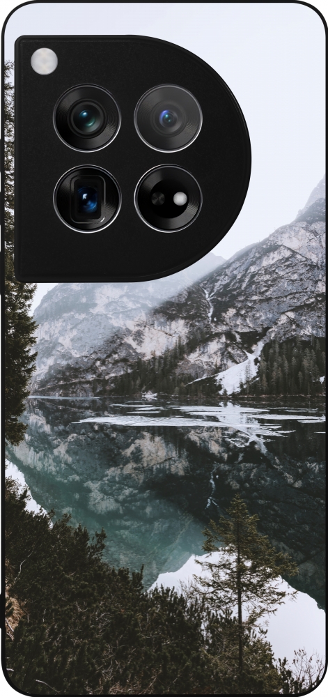 Coque OnePlus 12 - Silicone rigide noir Winter 22 snowy mountain and lake