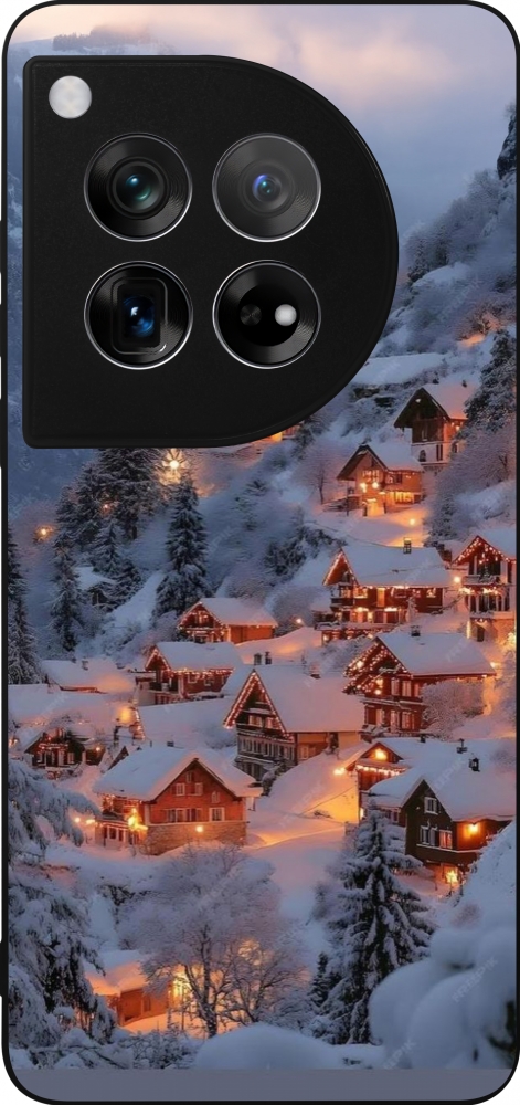 Coque OnePlus 12 - Silicone rigide noir Winter 25 Winter snowy village