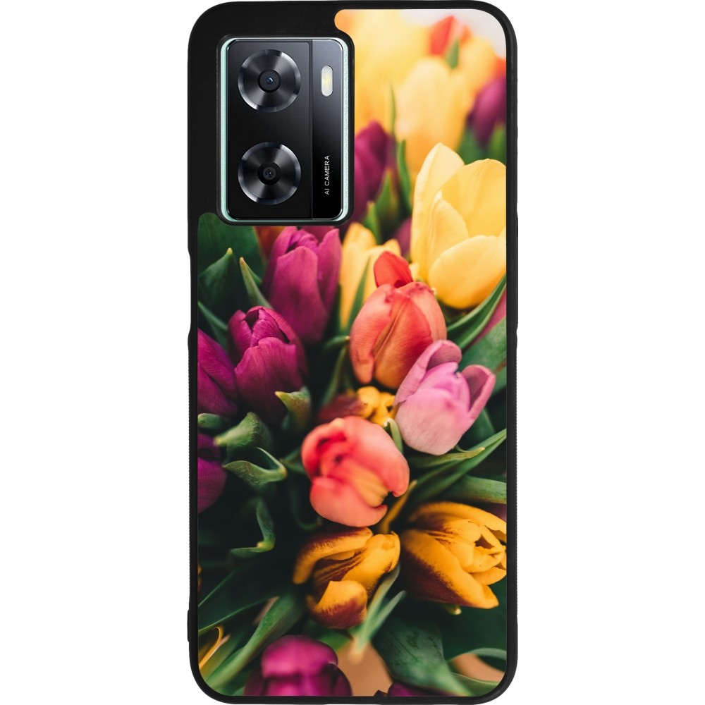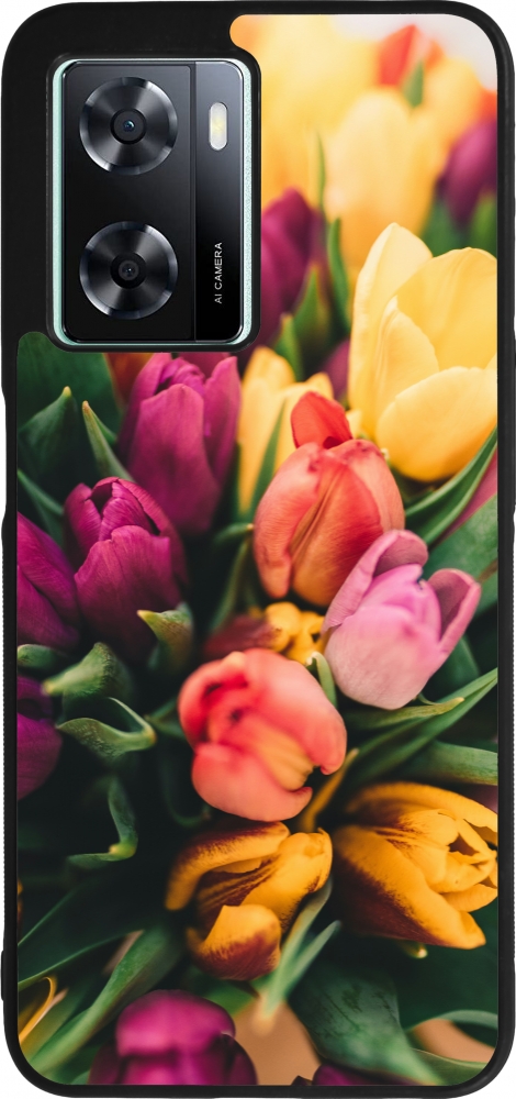 Coque OPPO A57 5G - Silicone rigide noir Bouquet of tulips Spring 2026