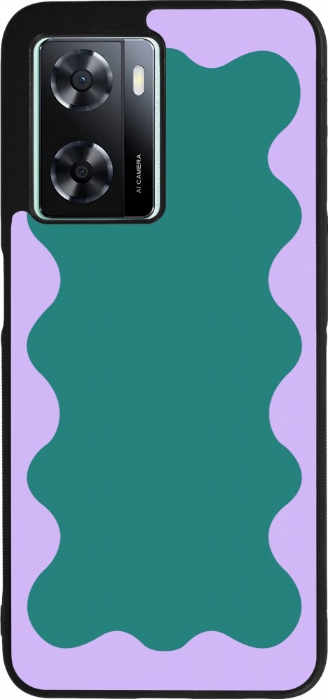 Coque OPPO A57 5G - Silicone rigide noir Wavy Rectangle Green Purple