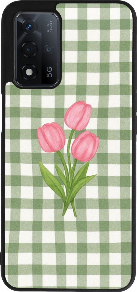 Coque OPPO A93s 5G - Silicone rigide noir Green vichy tulips Spring 2026