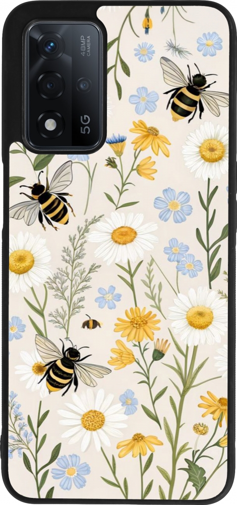 Coque OPPO A93s 5G - Silicone rigide noir Pattern bees Spring 2026