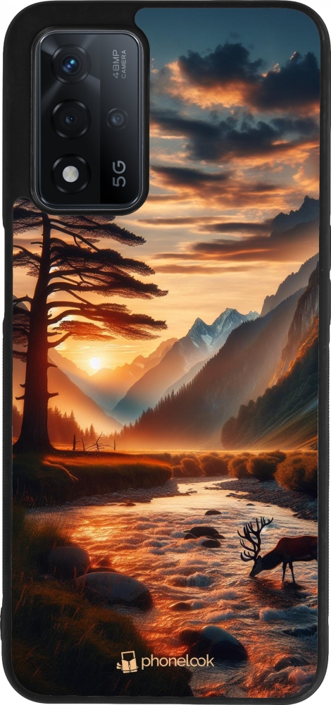 Coque OPPO A93s 5G - Silicone rigide noir Valley Sunset Deer Tree