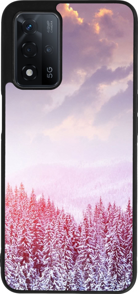 Coque OPPO A93s 5G - Silicone rigide noir Winter 22 Pink Forest