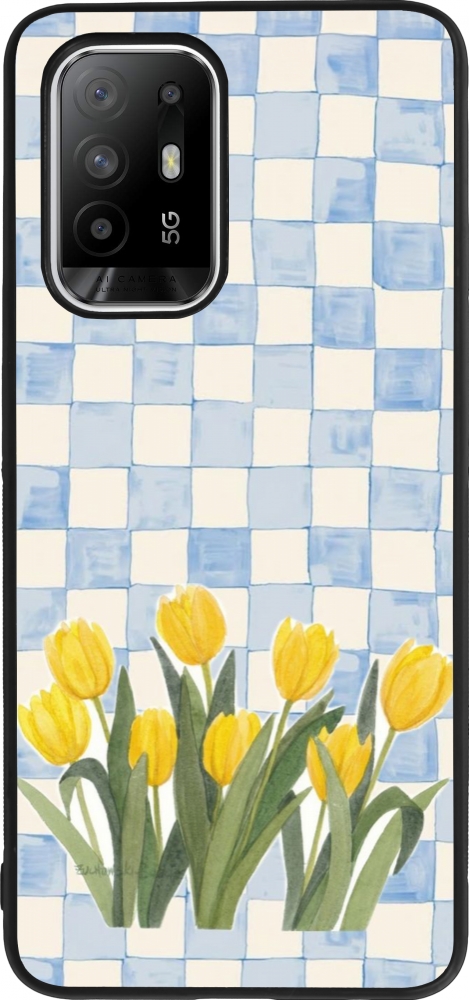 Coque OPPO F19 Pro+ - Silicone rigide noir Blue vichy tulips Spring 2026