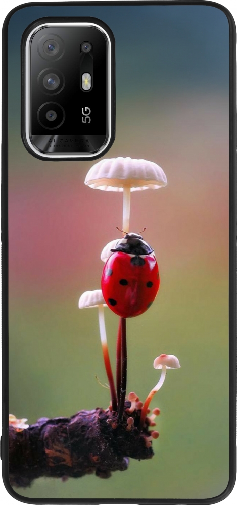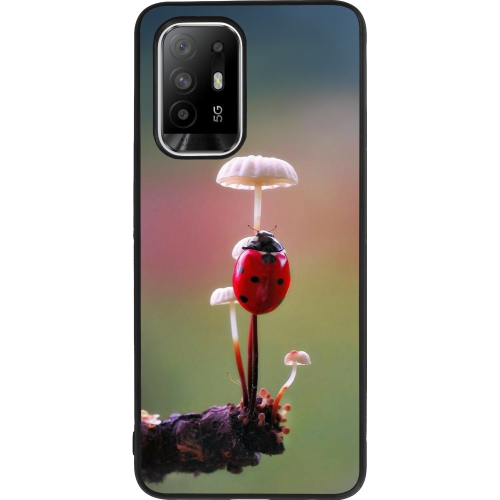 Coque OPPO F19 Pro+ - Silicone rigide noir Ladybird on a mushroom Spring 2026