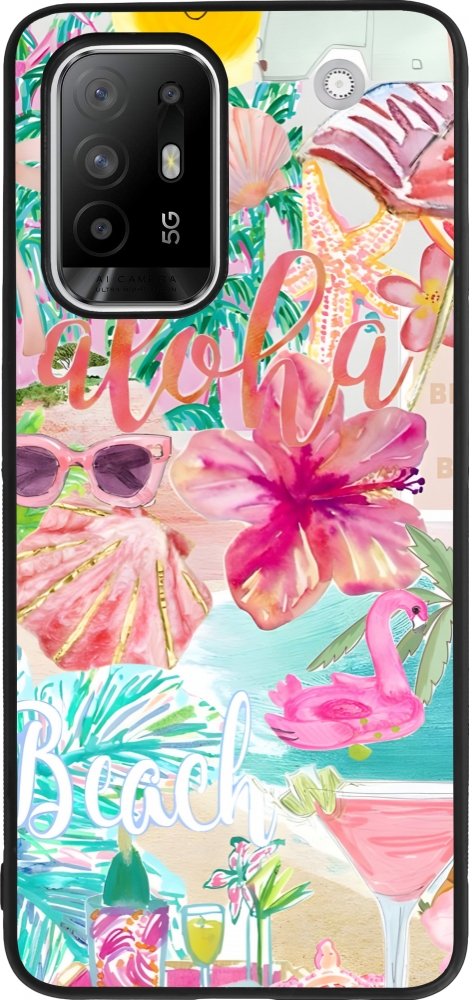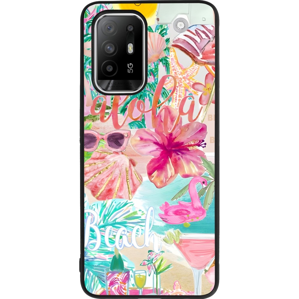 Coque OPPO F19 Pro+ - Silicone rigide noir Preppy Collage Aloha