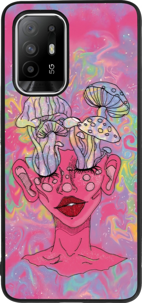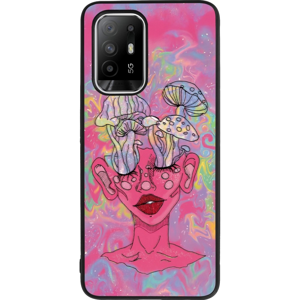Coque OPPO F19 Pro+ - Silicone rigide noir Psychedelic pink mushroom