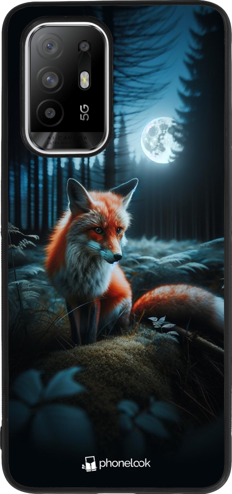 Coque OPPO F19 Pro+ - Silicone rigide noir Renard lune forêt