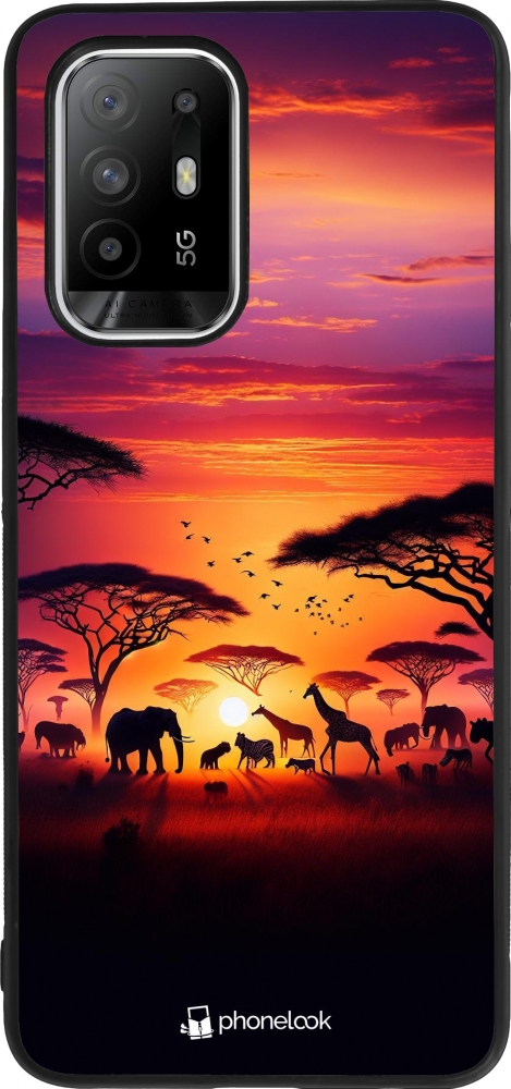 Coque OPPO F19 Pro+ - Silicone rigide noir Safari sunset wildlife