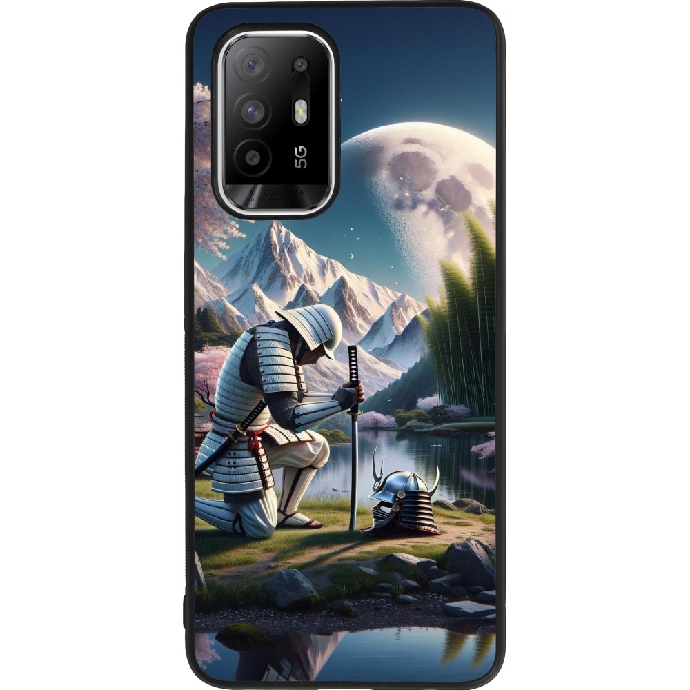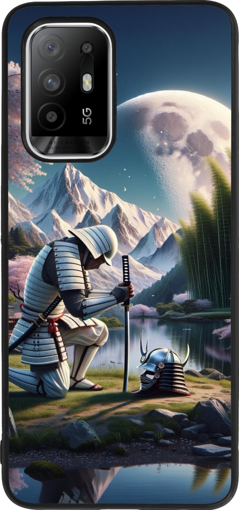 Coque OPPO F19 Pro+ - Silicone rigide noir Samurai Katana Lune