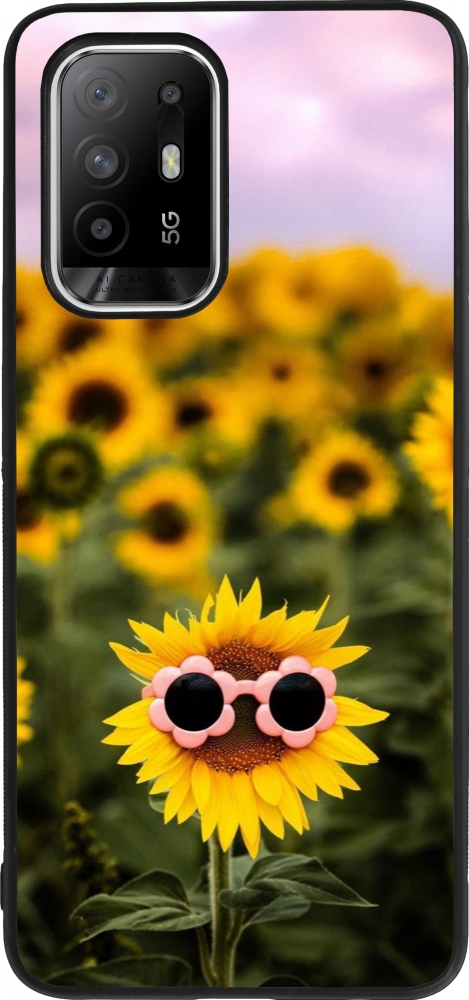 Coque OPPO F19 Pro+ - Silicone rigide noir Sunflower with glasses Spring 2026