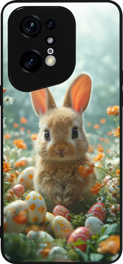 Coque OPPO Find X5 Pro - Silicone rigide noir Easter 2026 Rabbit in the garden