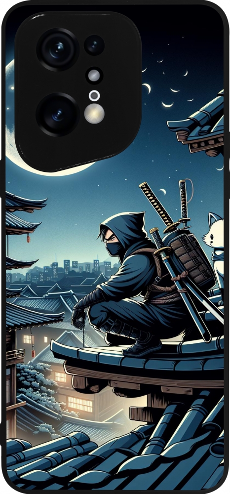Coque OPPO Find X5 Pro - Silicone rigide noir Ninja sous la lune