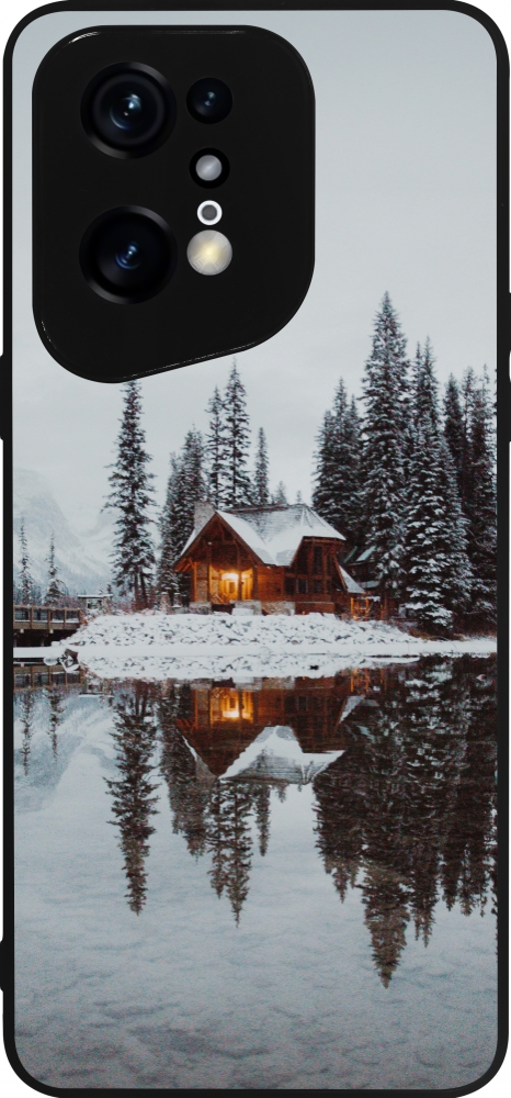 Coque OPPO Find X5 Pro - Silicone rigide noir Winter 25 Winter house forest afternoon