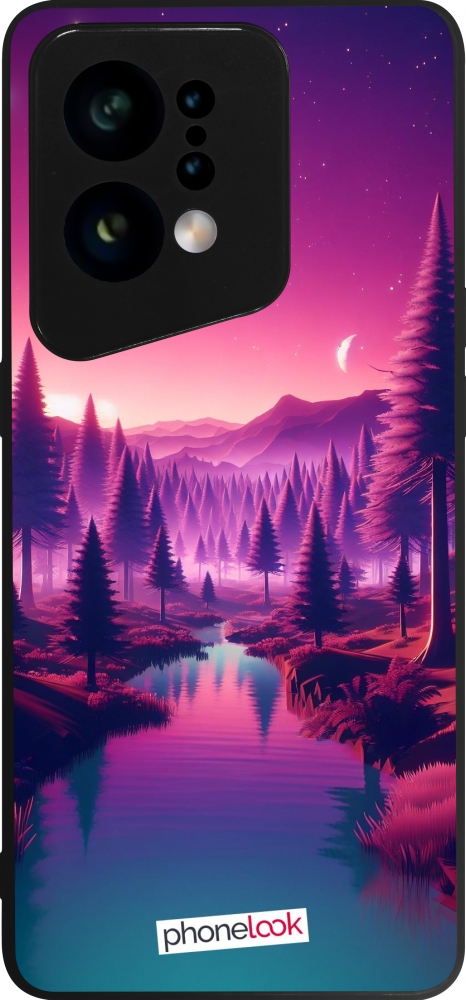 Coque OPPO Find X5 - Silicone rigide noir Paysage Violet-Rose