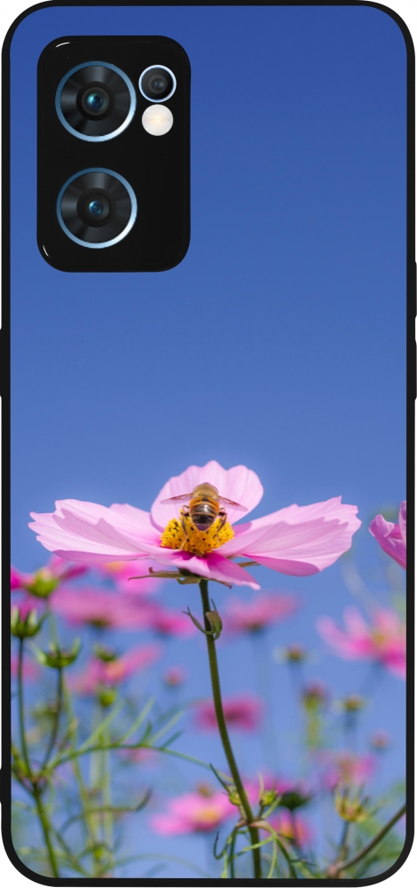 Coque OPPO Reno7 5G - Silicone rigide noir Bee on a flower Spring 2026