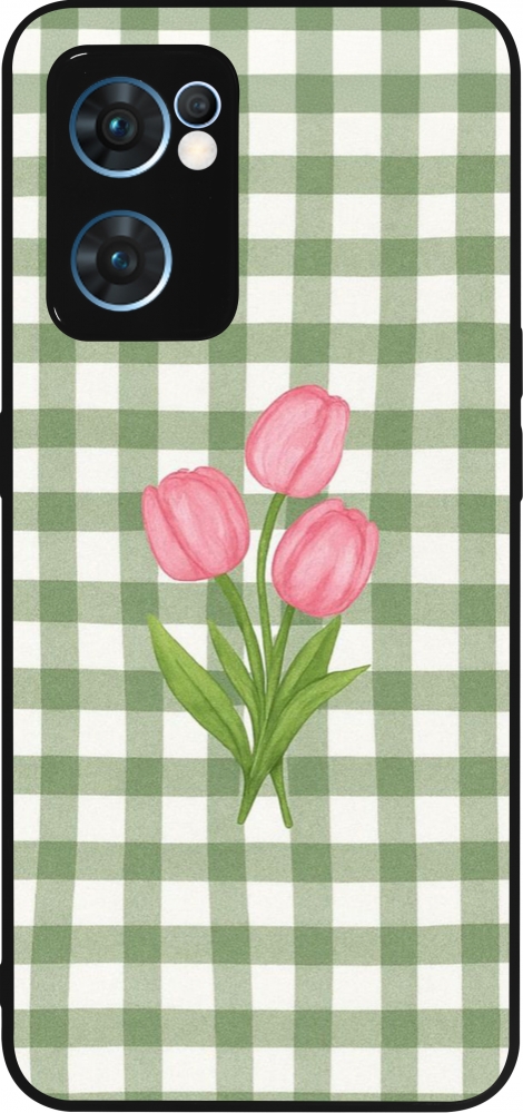 Coque OPPO Reno7 5G - Silicone rigide noir Green vichy tulips Spring 2026