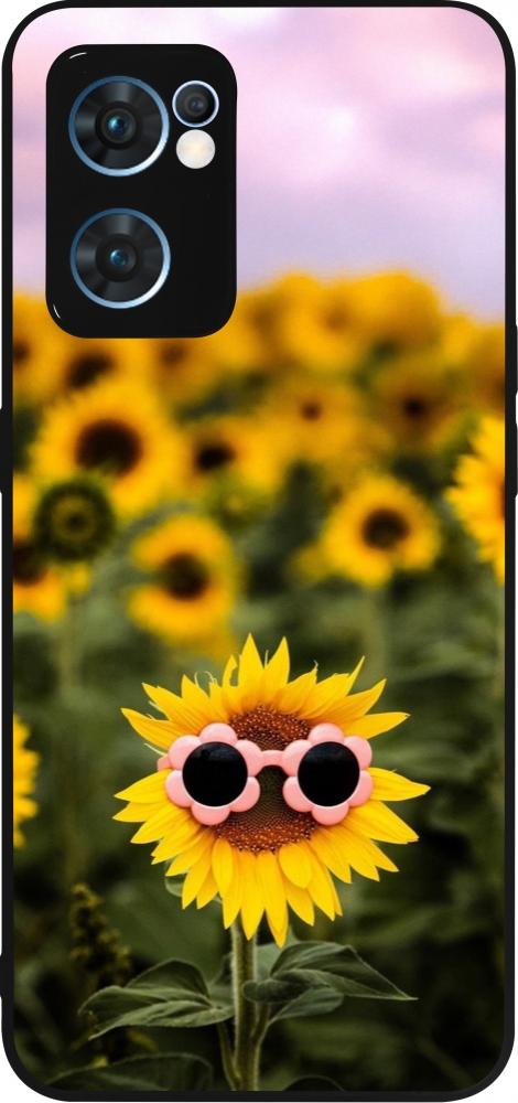Coque OPPO Reno7 5G - Silicone rigide noir Sunflower with glasses Spring 2026