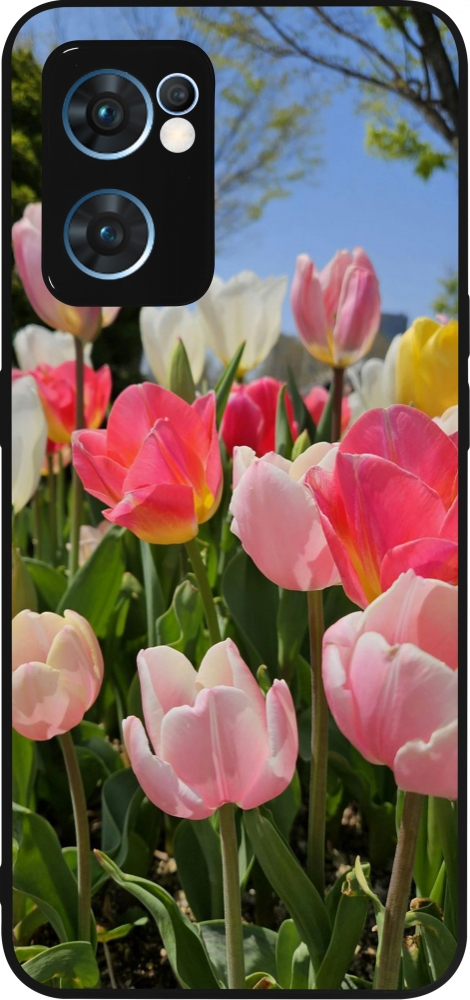 Coque OPPO Reno7 5G - Silicone rigide noir Tulips Spring 2026