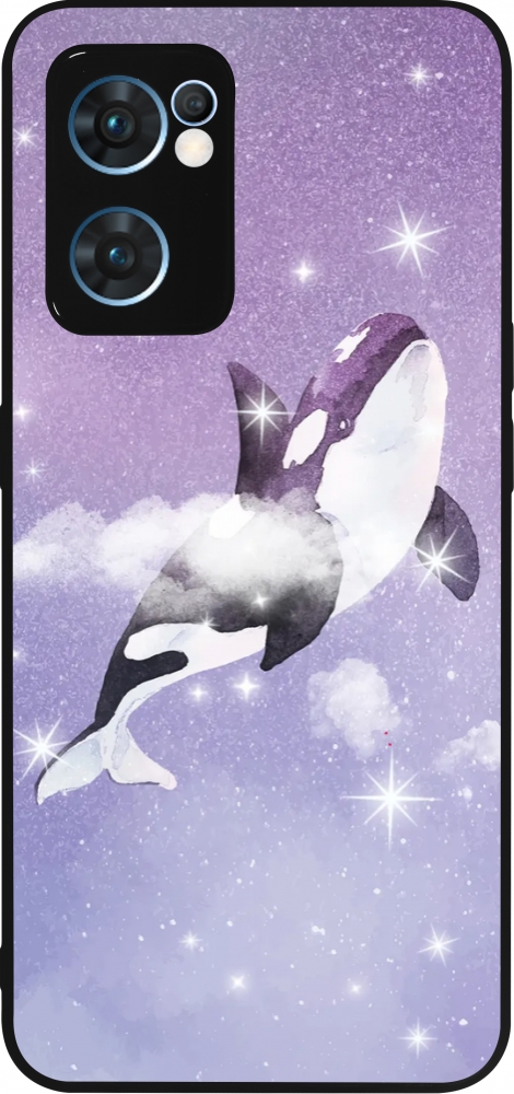 Coque OPPO Reno7 5G - Silicone rigide noir Whale in sparking stars