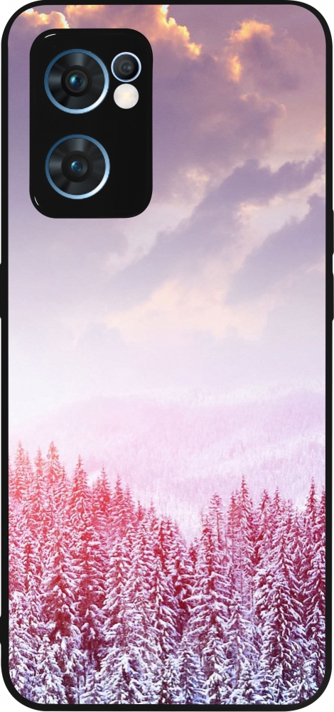 Coque OPPO Reno7 5G - Silicone rigide noir Winter 22 Pink Forest