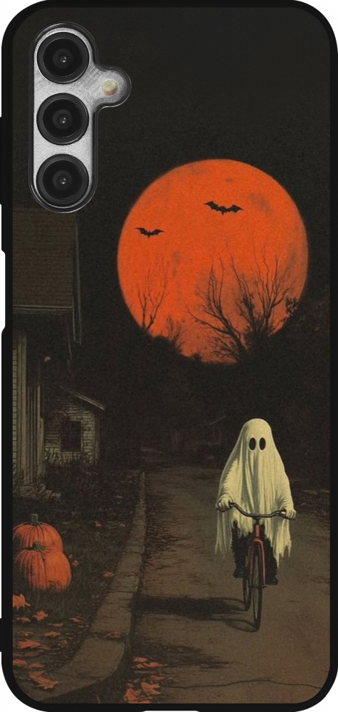 Coque Samsung Galaxy A14 5G - Silicone rigide noir Halloween 2025 Ghost on a bicycle