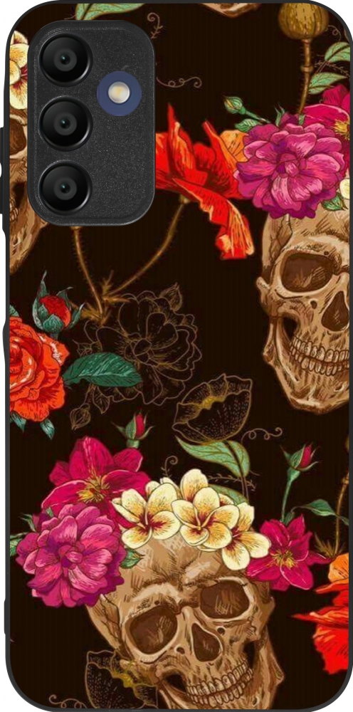 Coque Samsung Galaxy A16 - Silicone rigide noir Skulls and flowers