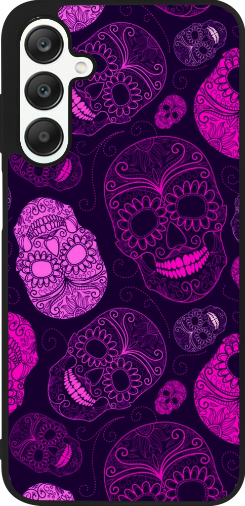 Coque Samsung Galaxy A25 - Silicone rigide noir Halloween 2023 pink skulls