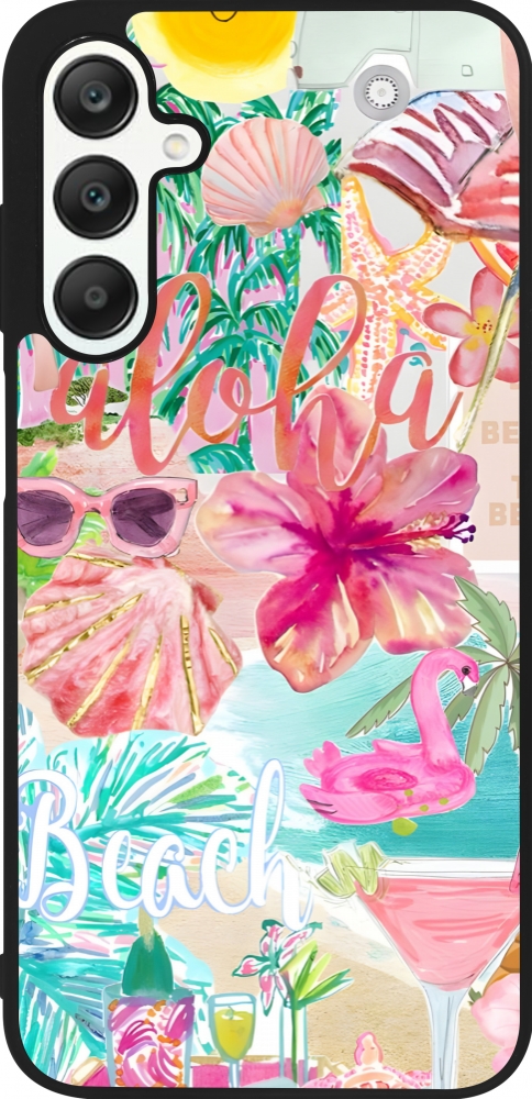 Coque Samsung Galaxy A25 - Silicone rigide noir Preppy Collage Aloha