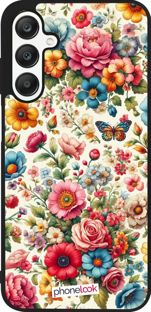 Coque Samsung Galaxy A25 - Silicone rigide noir Spring 25 printemps fleuri