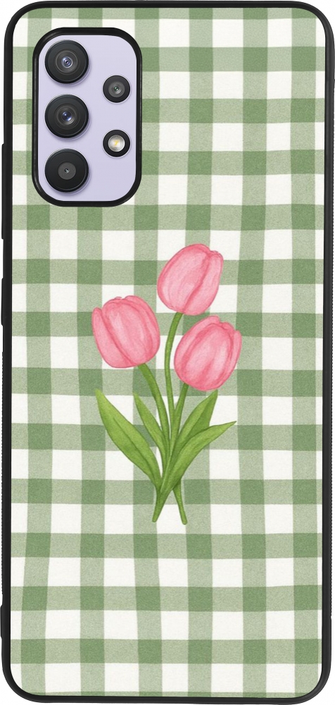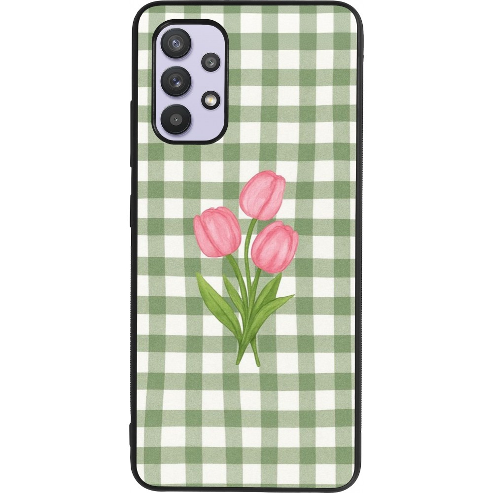 Coque Samsung Galaxy A32 - Silicone rigide noir Green vichy tulips Spring 2026