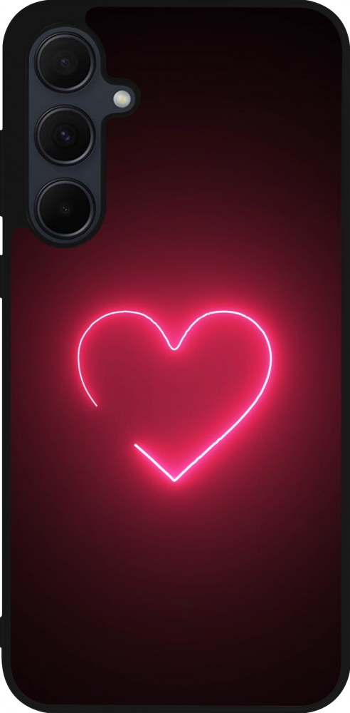 Coque Samsung Galaxy A35 5G - Silicone rigide noir Valentine 2023 single neon heart