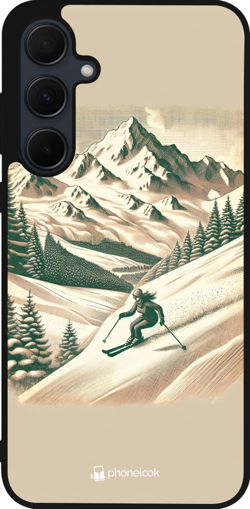 Coque Samsung Galaxy A35 5G - Silicone rigide noir Vintage Ski Mountain