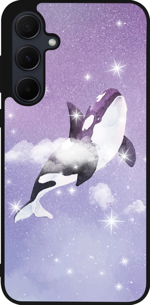 Coque Samsung Galaxy A35 5G - Silicone rigide noir Whale in sparking stars