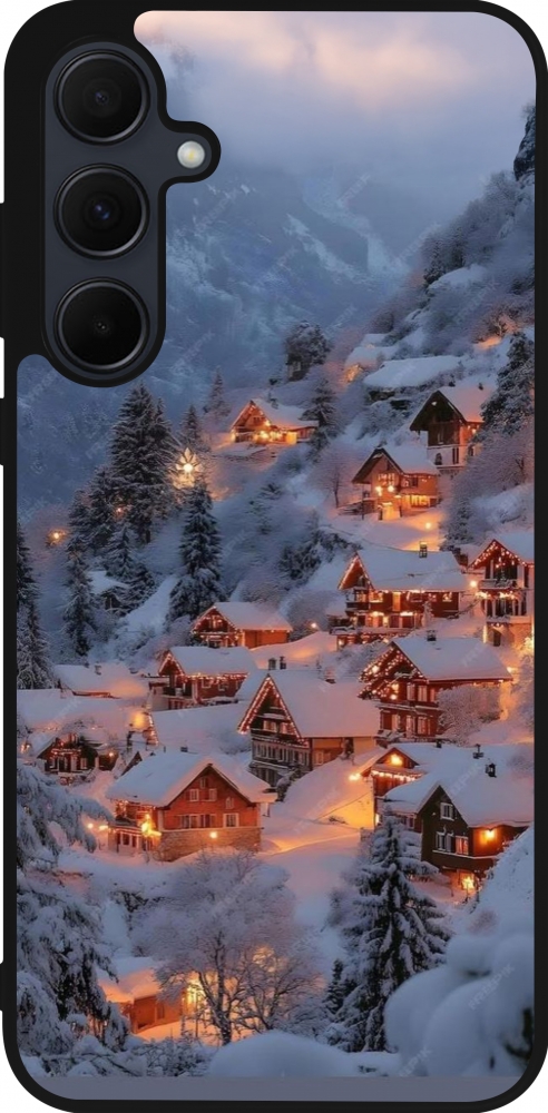 Coque Samsung Galaxy A35 5G - Silicone rigide noir Winter 25 Winter snowy village