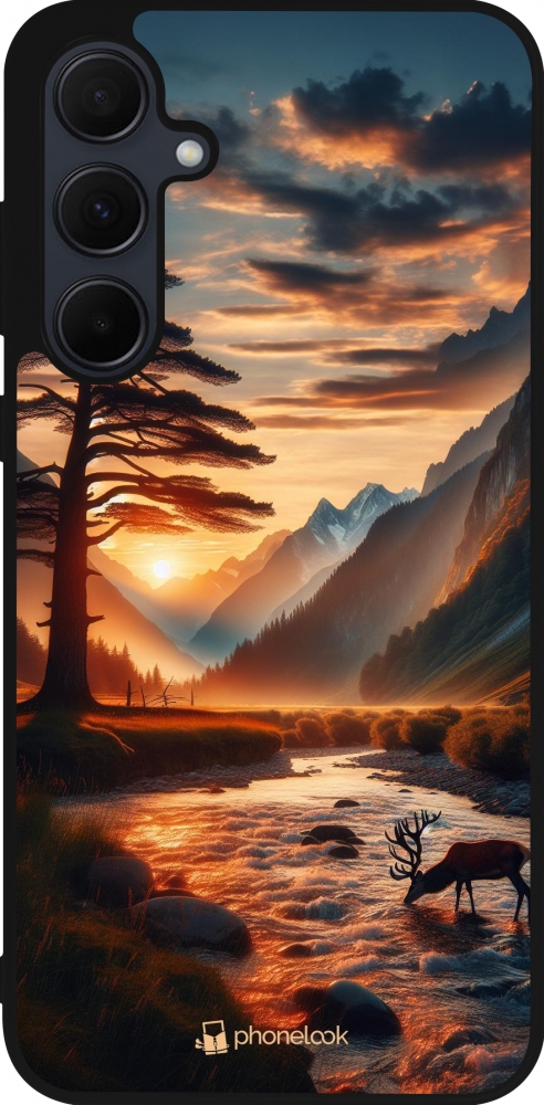 Coque Samsung Galaxy A36 - Silicone rigide noir Valley Sunset Deer Tree