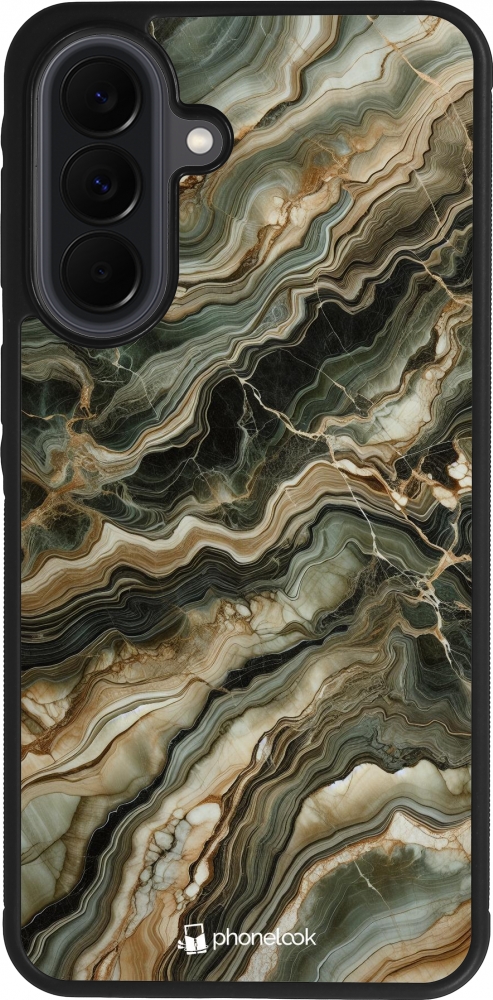 Coque Samsung Galaxy A37 - Silicone rigide noir Marbre Olive