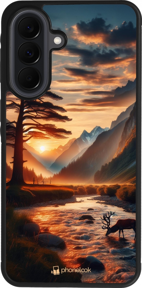 Coque Samsung Galaxy A37 - Silicone rigide noir Valley Sunset Deer Tree