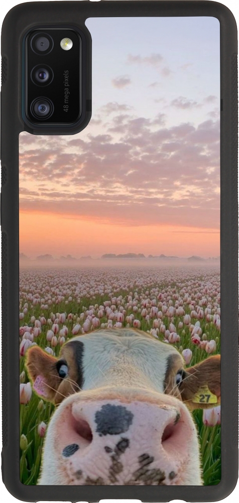 Coque Samsung Galaxy A41 - Silicone rigide noir Cow with tulips 2026