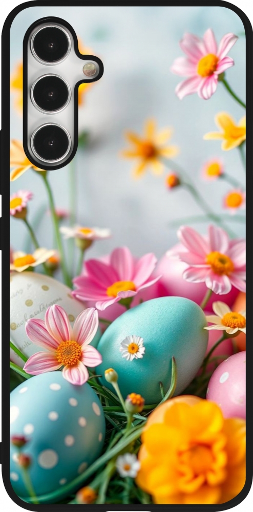 Coque Samsung Galaxy A54 5G - Silicone rigide noir Easter 2026 Eggs with flowers
