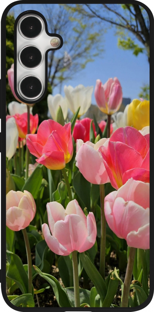 Coque Samsung Galaxy A54 5G - Silicone rigide noir Tulips Spring 2026