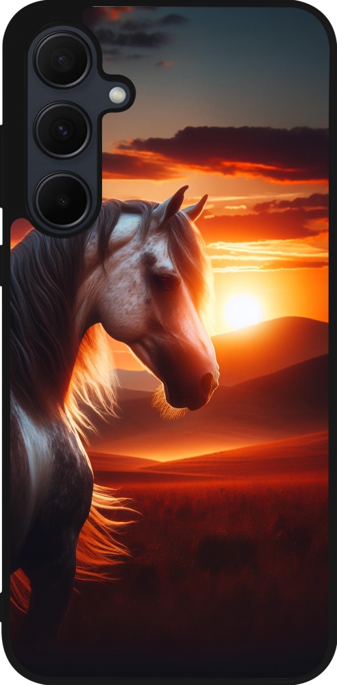 Coque Samsung Galaxy A55 5G - Silicone rigide noir Majestic Sunset Horse