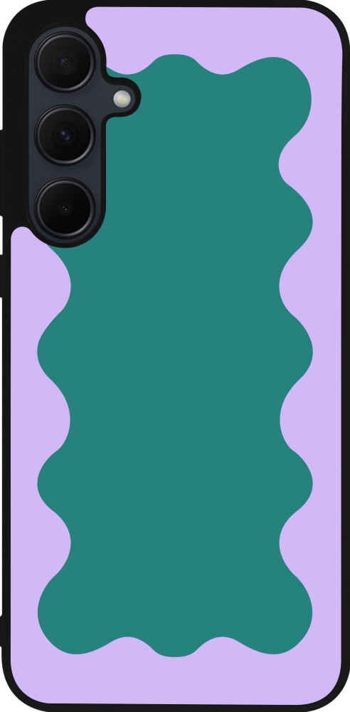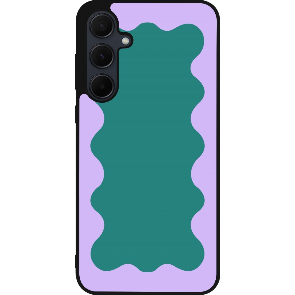 Coque Samsung Galaxy A55 5G - Silicone rigide noir Wavy Rectangle Green Purple