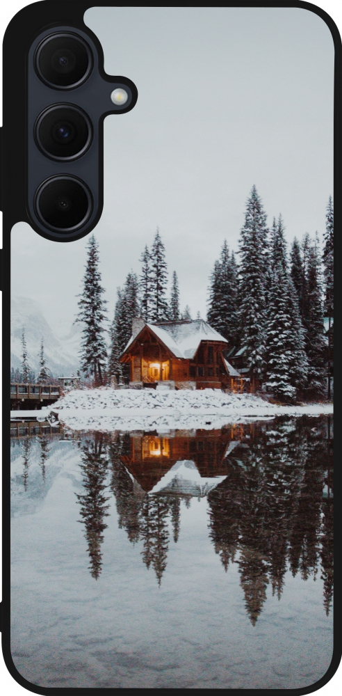Coque Samsung Galaxy A55 5G - Silicone rigide noir Winter 25 Winter house forest afternoon